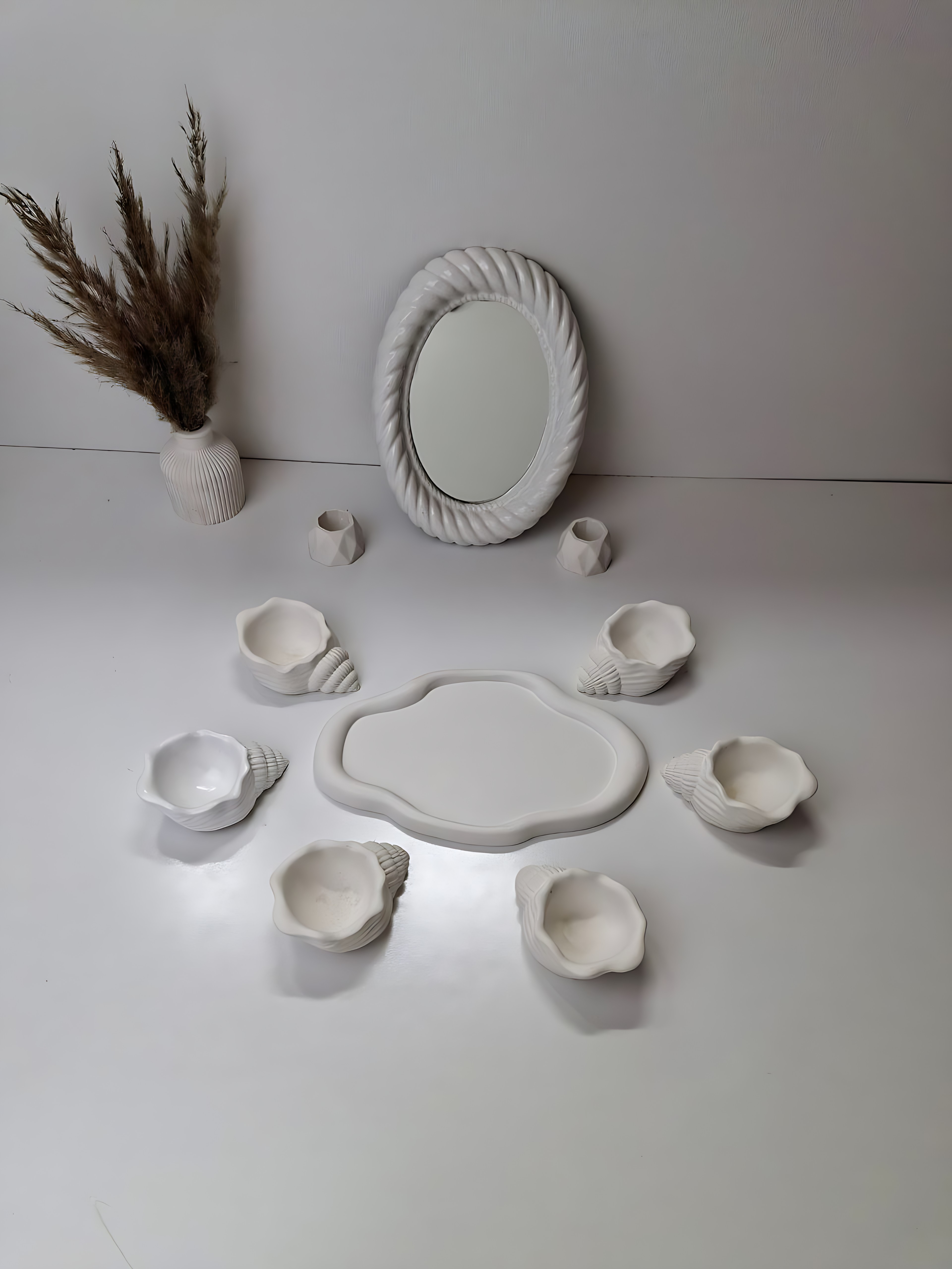 ست هفت سین جنس سنگ مصنوعی ضد آب با مقاومت بالا شامل ۶ عدد صدف حلزونی برای سین، ظرف سبزه،اینه،شمعدان،گلدان+اشانتیون بالا ترین کیفیت پایین ترین قیمت بازار